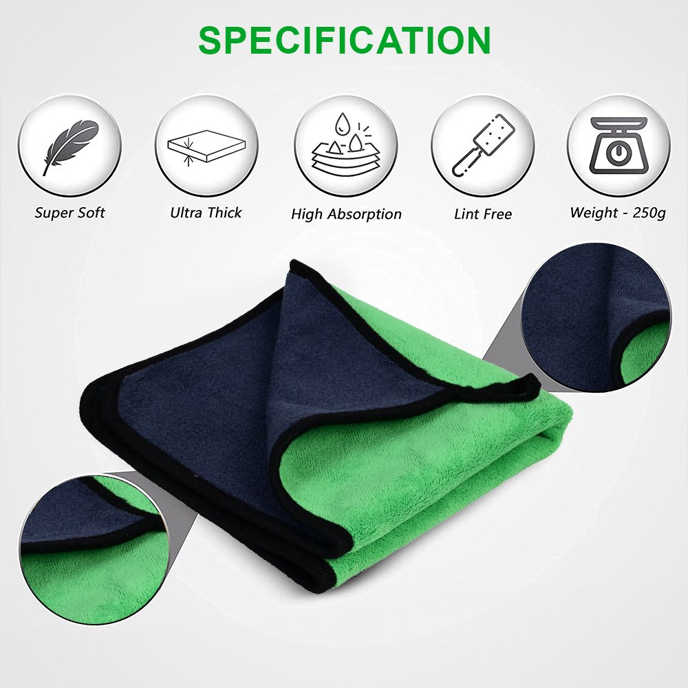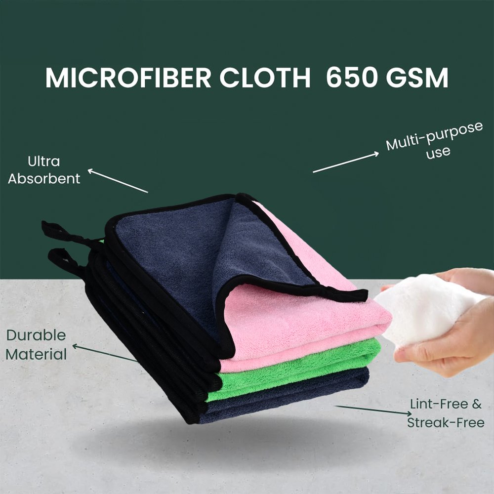 Premium 650 GSM microfiber cloth designed for professional car care. Ultra-thick, super absorbent, and lint-free, it safely cleans paint, glass, and interiors without scratches. Perfect for drying, polishing, or detailing. Durable, reusable, and delivers a streak-free, showroom shine every time.
