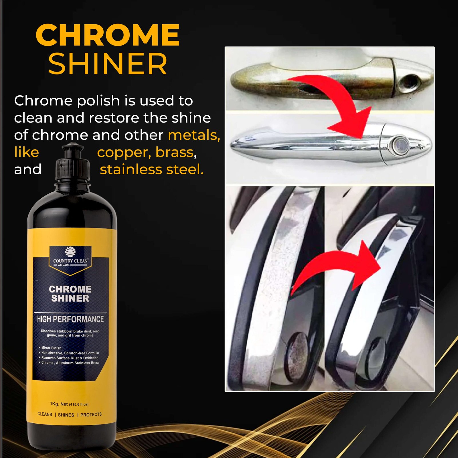 High-Gloss Shine – Restores brilliance to chrome, metal, and stainless-steel parts.